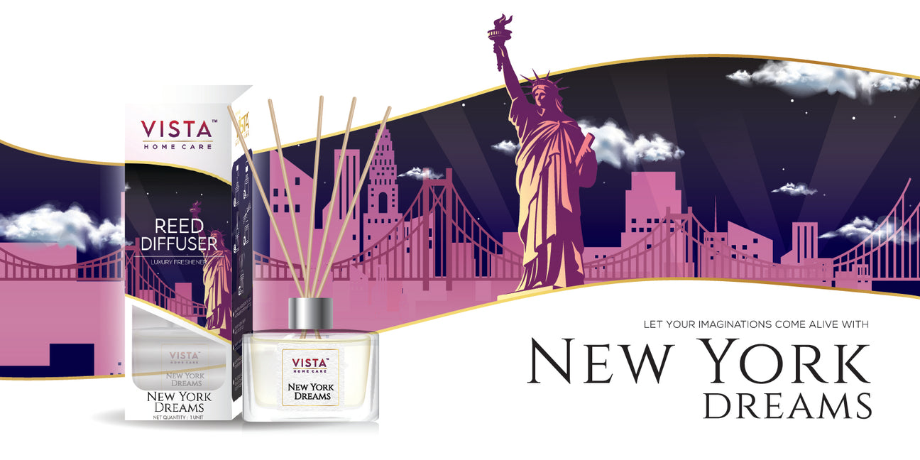 New York Dreams 1 Unit Reed Diffuser | 100 ml Luxury Air Freshener with 6 Reeds 20cm | For Home, Bedroom, Living Room & Office