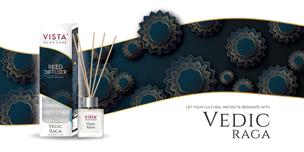 Vedic Raga 1 Unit Reed Diffuser | 50 ml Luxury Air Freshener with 6 Reeds 19cm | For Home, Bedroom, Living Room & Office